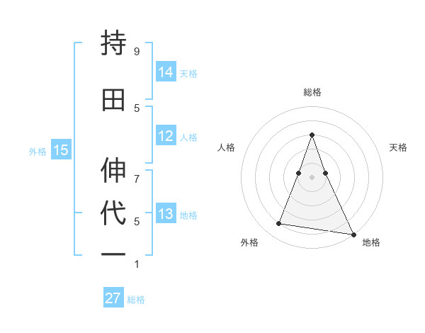 持田 伸代一さんを姓名の画数から五運を鑑定