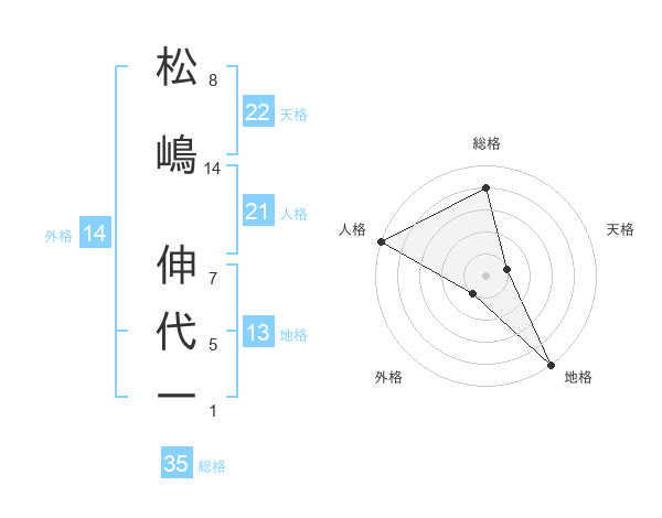 松嶋 伸代一さんの総格は35画の4点!