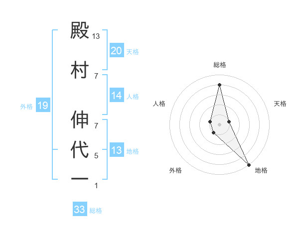 殿村 伸代一さんを姓名の画数から五運を鑑定