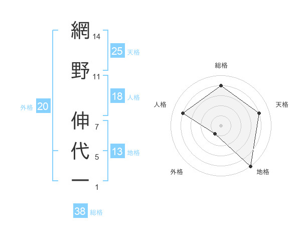 網野 伸代一さんを姓名の画数から五運を鑑定