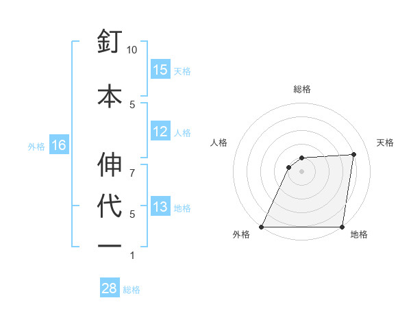 釘本 伸代一さんを姓名の画数から五運を鑑定