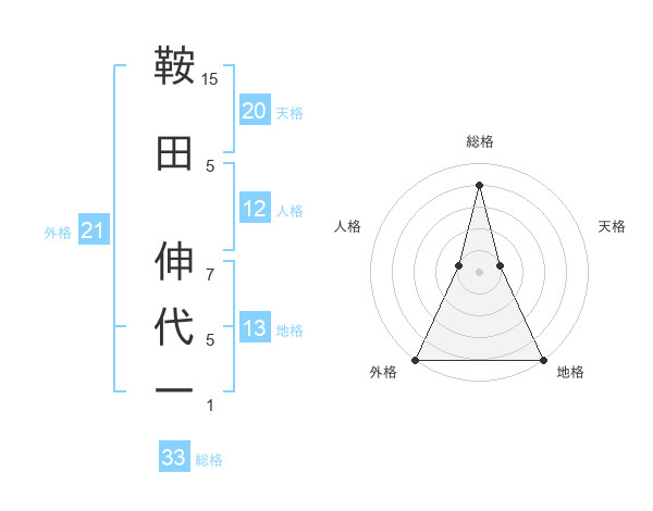 鞍田 伸代一さんの総格は33画の4点!