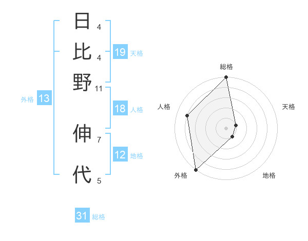 日比野 伸代さんを姓名の画数から五運を鑑定