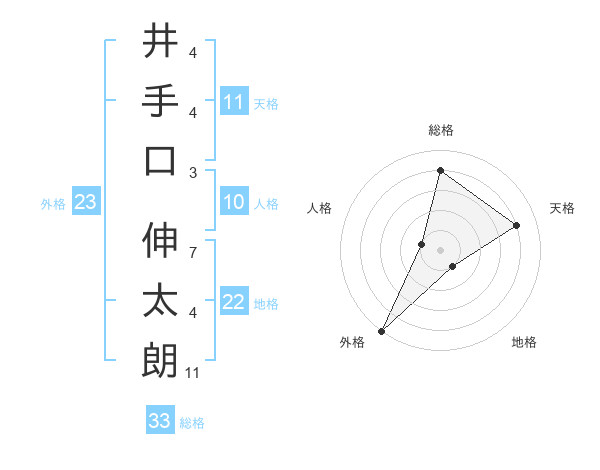 井手口 伸太朗さんの総格は33画の4点!