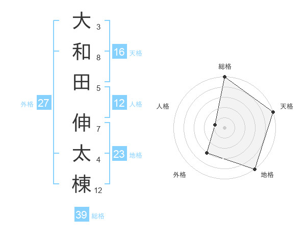 大和田 伸太棟さんを姓名の画数から五運を鑑定