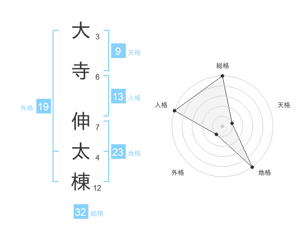 大寺 伸太棟さんの総格は32画の5点!