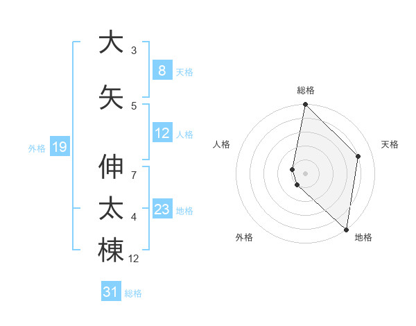 大矢 伸太棟さんを姓名の画数から五運を鑑定