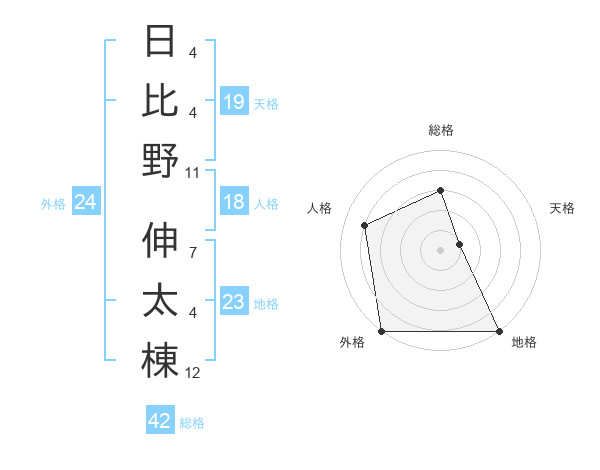 日比野 伸太棟さんを姓名の画数から五運を鑑定