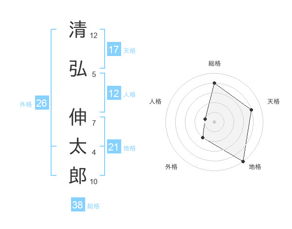 清弘 伸太郎さんの総格は38画の4点