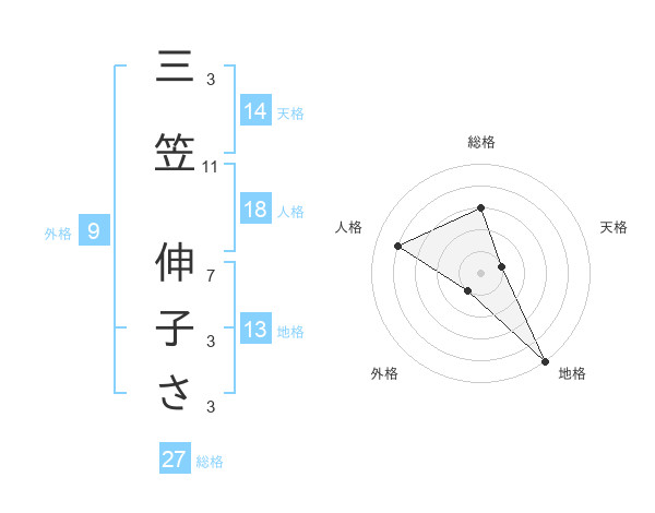 三笠 伸子ささんを姓名の画数から五運を鑑定