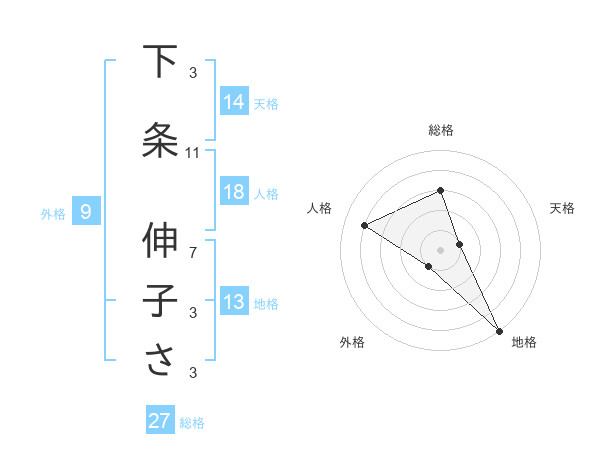下条 伸子ささんを姓名の画数から五運を鑑定
