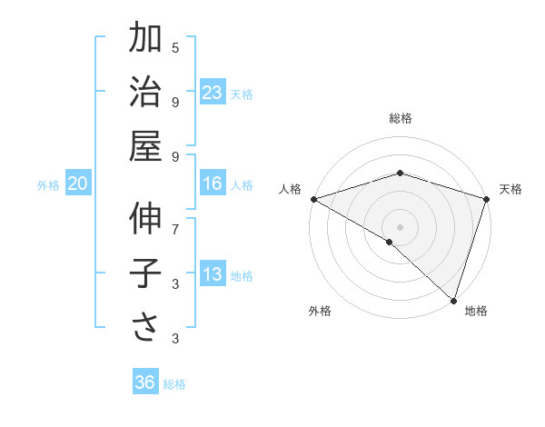 加治屋 伸子ささんの天格は23画の5点!