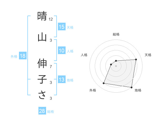 晴山 伸子ささんの地格は13画の5点!