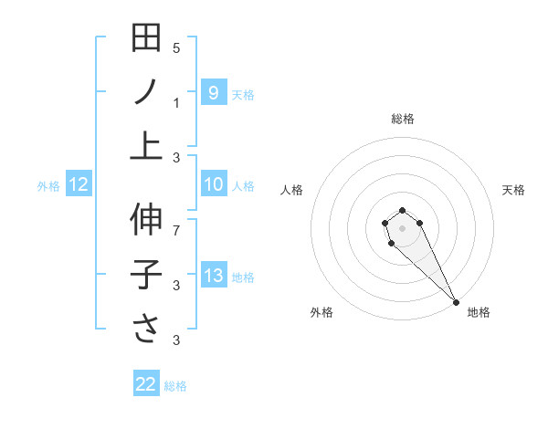 田ノ上 伸子ささんを姓名の画数から五運を鑑定