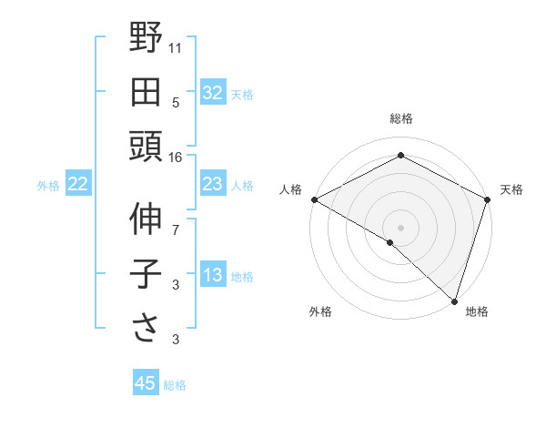 野田頭 伸子ささんを姓名の画数から五運を鑑定