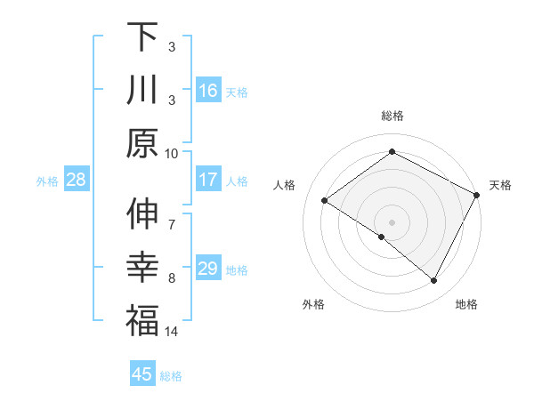 下川原 伸幸福さんを姓名の画数から五運を鑑定