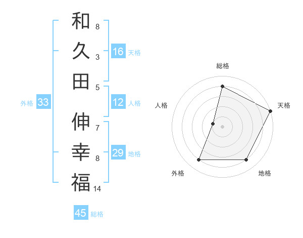 和久田 伸幸福さんを姓名の画数から五運を鑑定