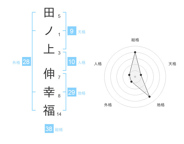 田ノ上 伸幸福さんを姓名の画数から五運を鑑定
