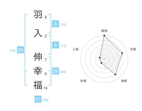 羽入 伸幸福さんの総格は37画の5点!