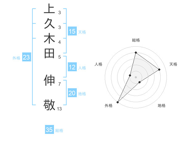 上久木田 伸敬さんを姓名の画数から五運を鑑定
