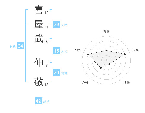 喜屋武 伸敬さんを姓名の画数から五運を鑑定