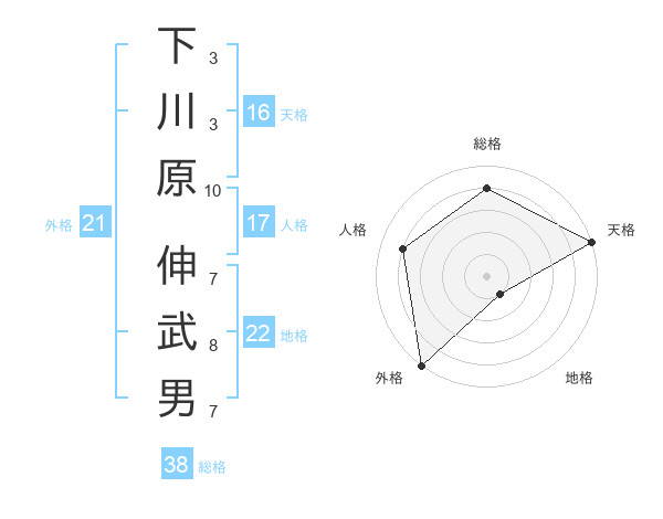 下川原 伸武男さんを姓名の画数から五運を鑑定