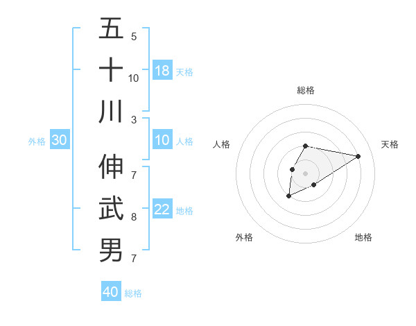 五十川 伸武男さんを姓名の画数から五運を鑑定