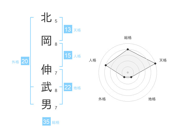 北岡 伸武男さんを姓名の画数から五運を鑑定