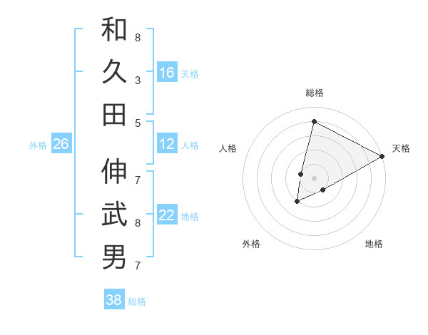 和久田 伸武男さんを姓名の画数から五運を鑑定