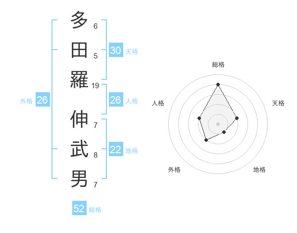 多田羅 伸武男さんを姓名の画数から五運を鑑定