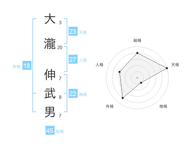 大瀧 伸武男さんを姓名の画数から五運を鑑定