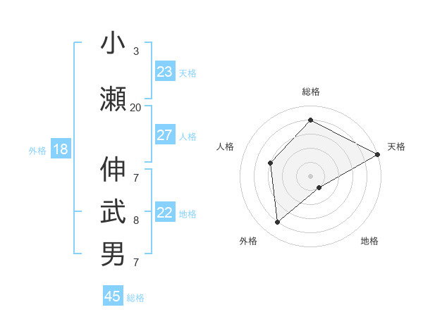 小瀬 伸武男さんの総格は45画の4点!