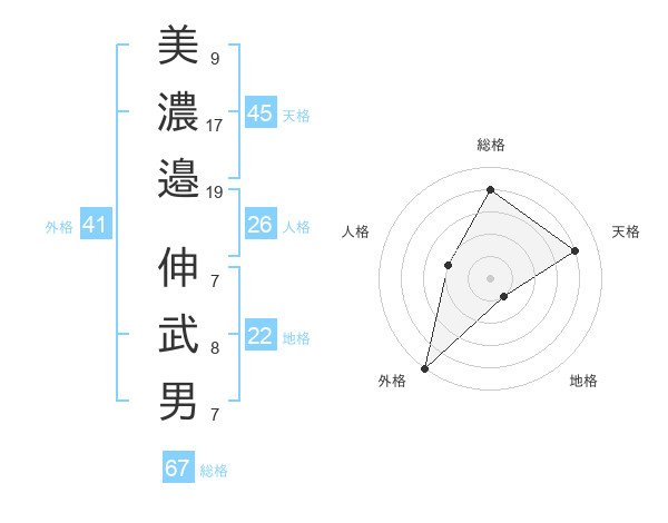 美濃邉 伸武男さんを姓名の画数から五運を鑑定