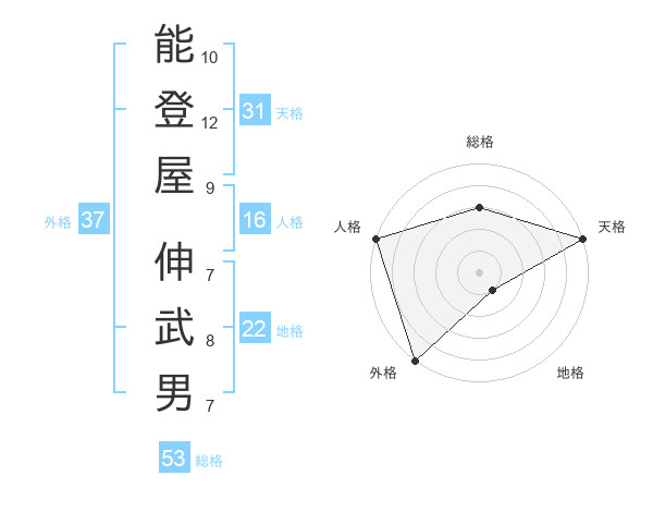 能登屋 伸武男さんを姓名の画数から五運を鑑定