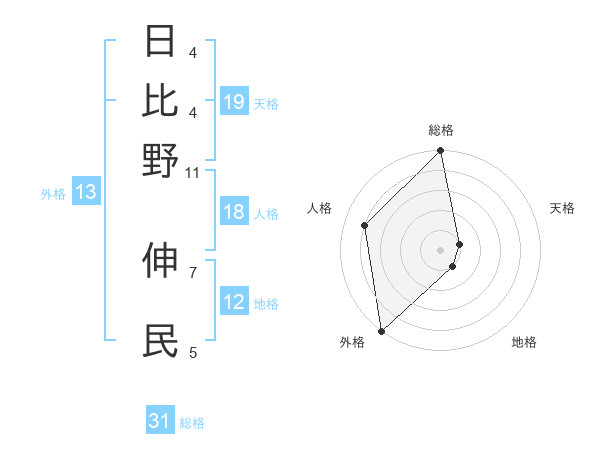 日比野 伸民さんを姓名の画数から五運を鑑定