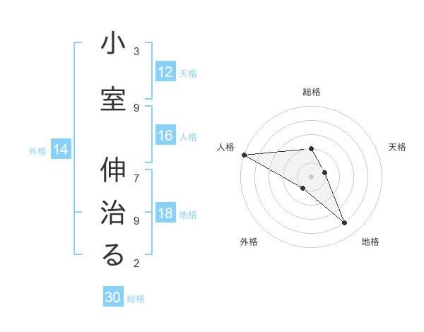 小室 伸治るさんを姓名の画数から五運を鑑定
