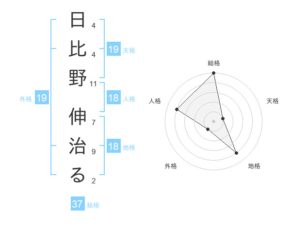 日比野 伸治るさんを姓名の画数から五運を鑑定