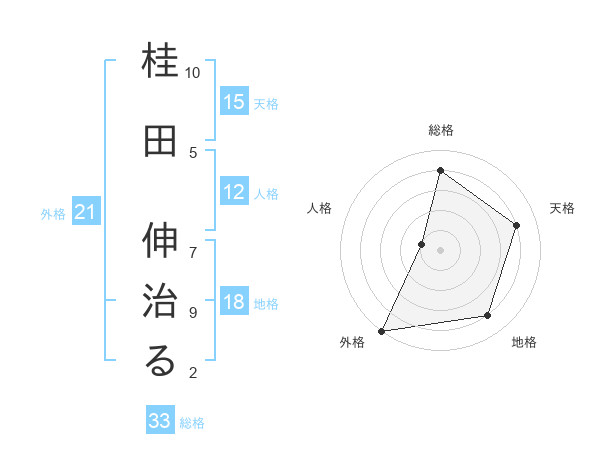 桂田 伸治るさんを姓名の画数から五運を鑑定
