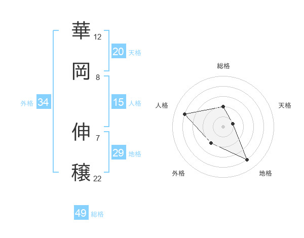 華岡 伸穣さんの総格は49画の2点!