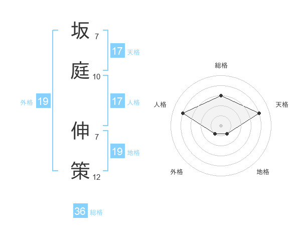 坂庭 伸策さんの総格は36画の3点!