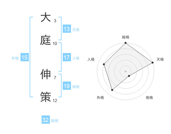 大庭 伸策さんの総格は32画の5点!