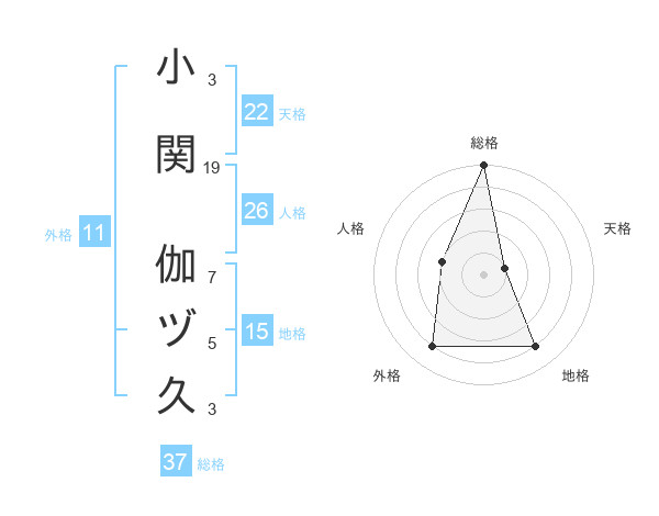 小関 伽ヅ久さんを姓名の画数から五運を鑑定