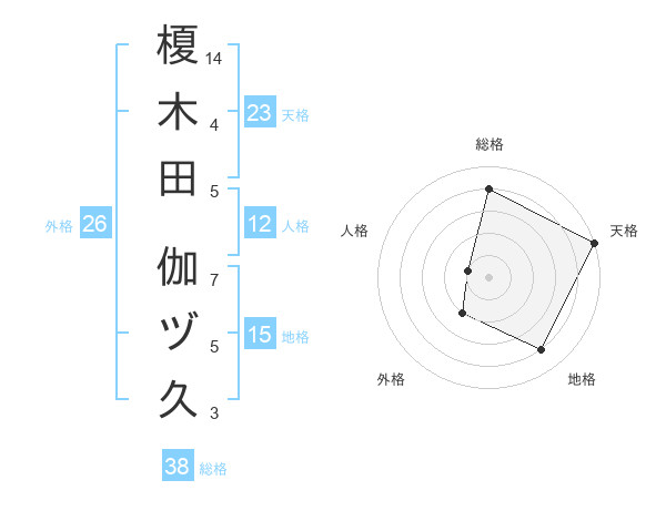 榎木田 伽ヅ久さんの総格は38画の4点!