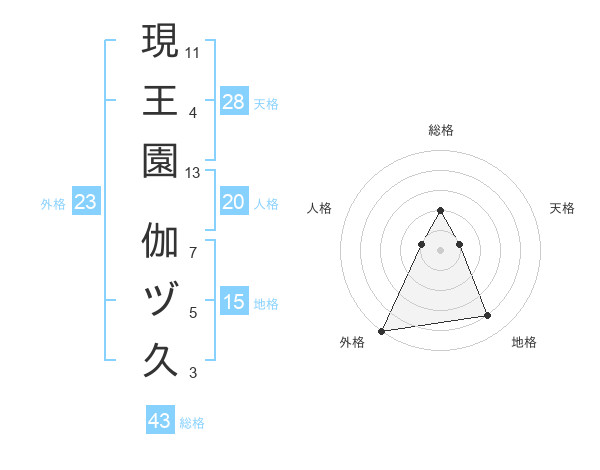 現王園 伽ヅ久さんを姓名の画数から五運を鑑定