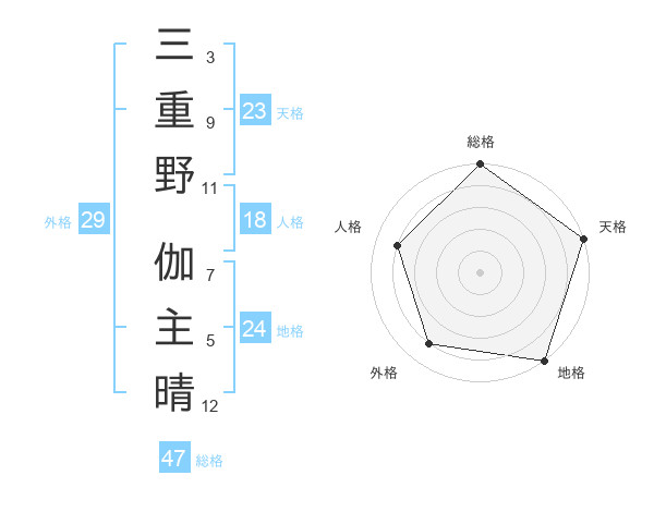 三重野 伽主晴さんを姓名の画数から五運を鑑定