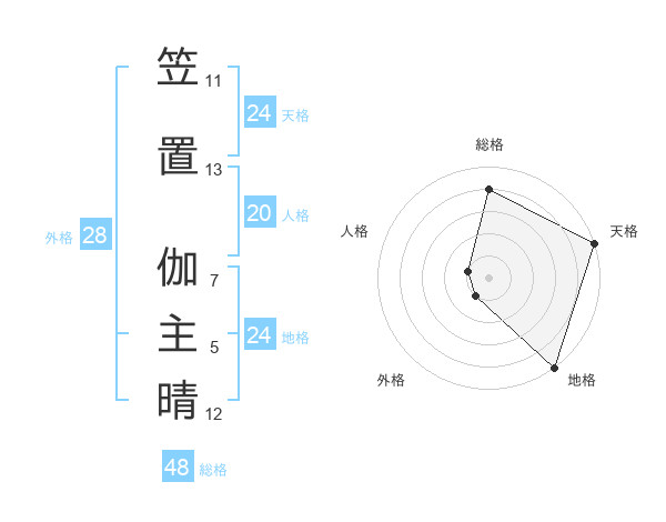 笠置 伽主晴さんの天格は24画の5点!