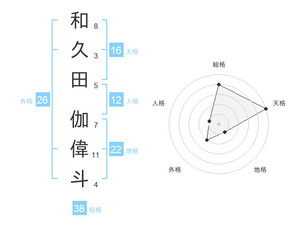 和久田 伽偉斗さんを姓名の画数から五運を鑑定