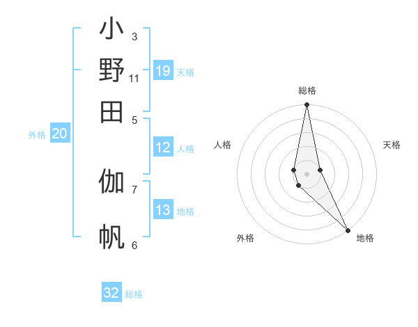 小野田 伽帆さんを姓名の画数から五運を鑑定