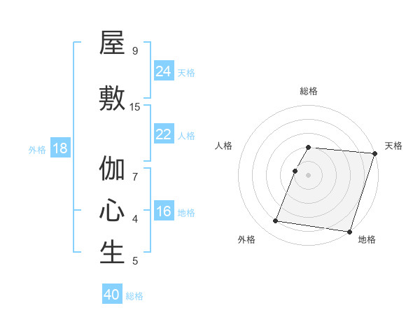 屋敷 伽心生さんの天格は24画の5点!