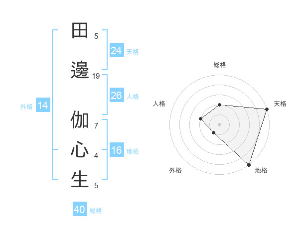 田邊 伽心生さんの天格は24画の5点!